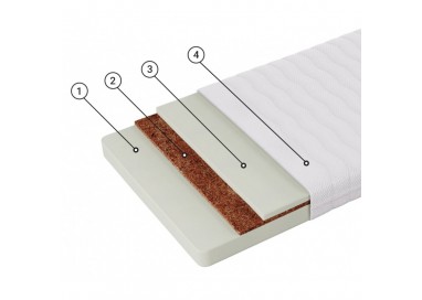 Кокосовая койра - 100% натуральный материал с уникальными свойствами. Койра, скрепленная натуральным латексом, дает объемную упругую воздухопроницаемую структуру. Такой материал используется в моделях, предназначенных для любителей более жесткого и упругого спального места. Естественные вентиляционные качества, эластичность, прочность, упругость, гигиеничность и антиаллергенность, наряду с очень долгим сроком службы, делают этот материал идеальным для наполнения матраса.